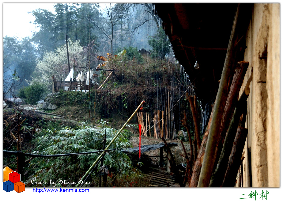 15分钟后,到了上斜村,没看到有人接应我们,喊一几声文盲,没人应,一阵担心,不会给梆起了吧!担心是多余的,问起每户人家,提起九哥都很热情地指明他家在那里。快到时,才看到文盲这个家伙打着伞接应我们,心里一阵内疚。