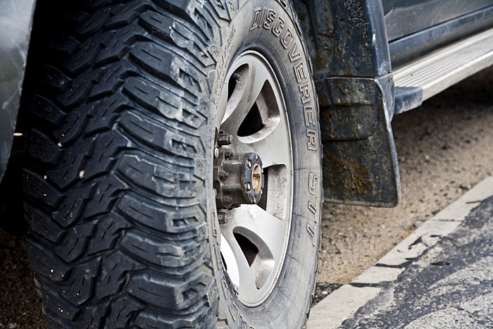 好马配好鞍,有了好车,就得考虑合适的鞋子。有众多优秀的轮胎可以选择:著名的倍耐力蝎子王AT胎,百路驰的AT,MT胎等等,但最终我选择的是美国Cooper的STT泥地胎,这个明智的选择令我路上很有面子,在这12000km最恶劣的路上,绝大部分人都有n次换胎补胎的经历,而我则可以完全不理会轮胎,在搓板路上以80km的速度飞快的从埋头换胎的车辆身边掠过。