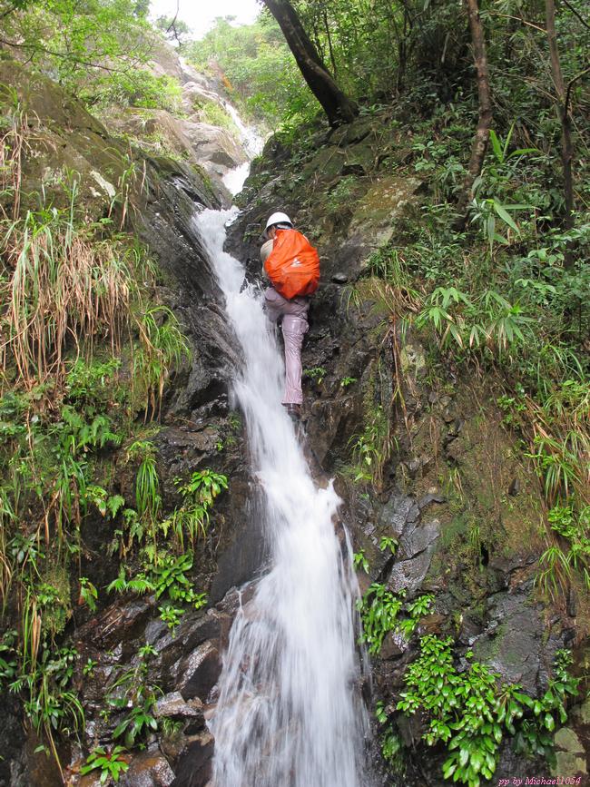 11:25 我们到了王母瀑,瀑底只能见其二段长瀑,水量不大,我们在王母瀑休息时,stivenshu个人爬了两段,对我们这队伍来说不难,但水量不,后经征询大伙意见后,决定不上王母。