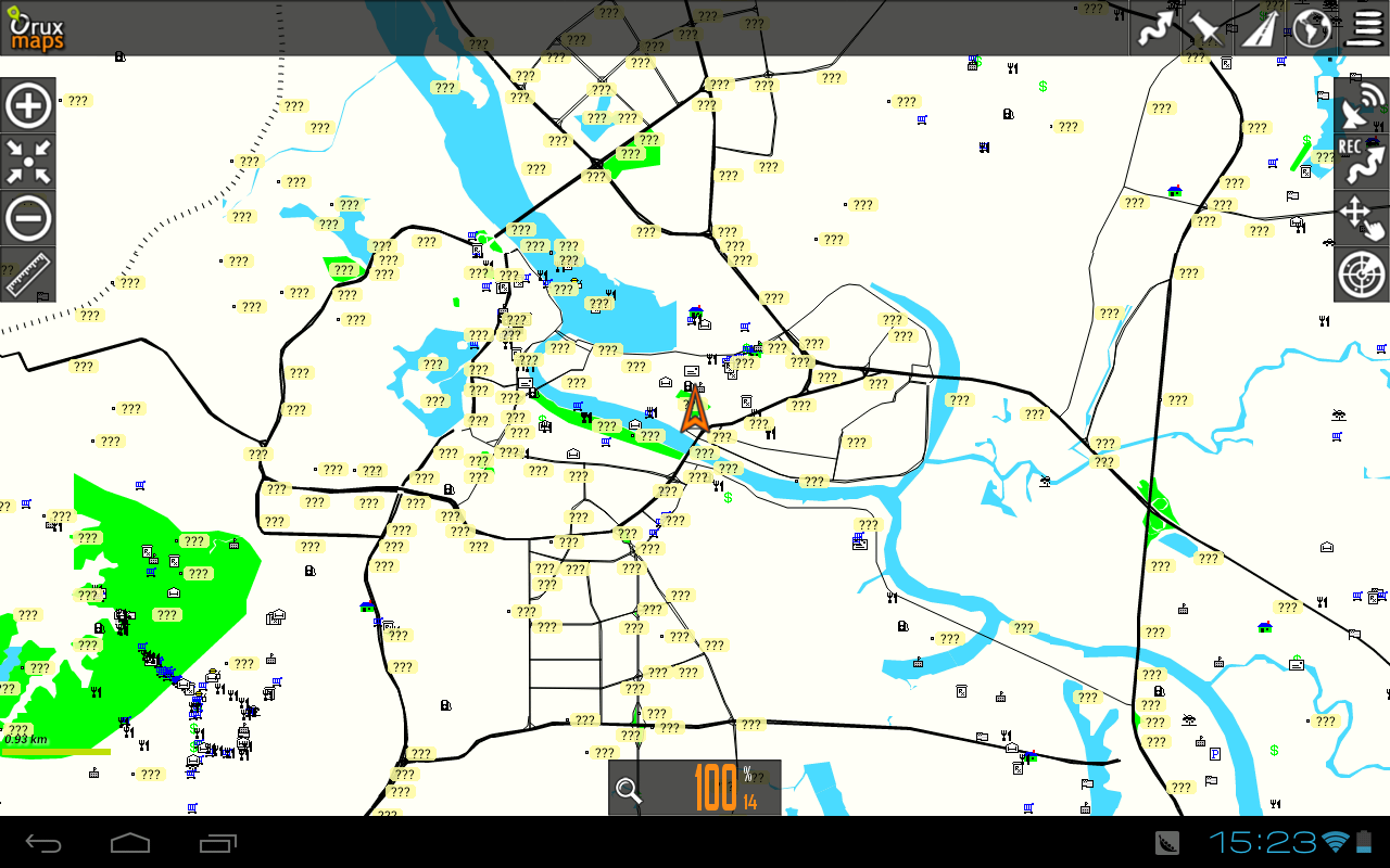 新版的OruxMaps已经支持Garmin的矢量地图,这无疑是个好消息。实际测试了一下,发现有两个问题,一个是汉字地名显示为“???”一样的乱码,另外无论什么级别的道路的线条都是一样的细线,看起来单调且呆板。虽然可以无级缩放,但看起来也不大舒服。<br /> 不知道哪位tx能解决乱码的问题。<br />[url=2012/08/28/c/c21525f4c07214d637b3d12692b78682.png]
