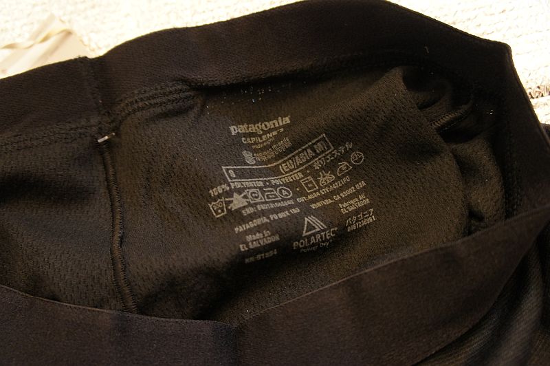 本人身高170, 体重67-68kg, 胸围约85,腰围约80, 体型算是肌肉偏多, 没有明显赘肉,平时穿的是欧标S-M号, 通常贴身S会太紧, M会松一点, 这次拿到的C3内衣裤都是美标S码,领口标对应欧标M码, 穿上身发现上身相当宽松, 而下身却相当紧身, 按照Patagonia的说明, C3属于修身剪裁, 但我穿的感觉却是衣服宽松剪裁, 裤子紧身剪裁, 不知道是不是身材不够标准的缘故