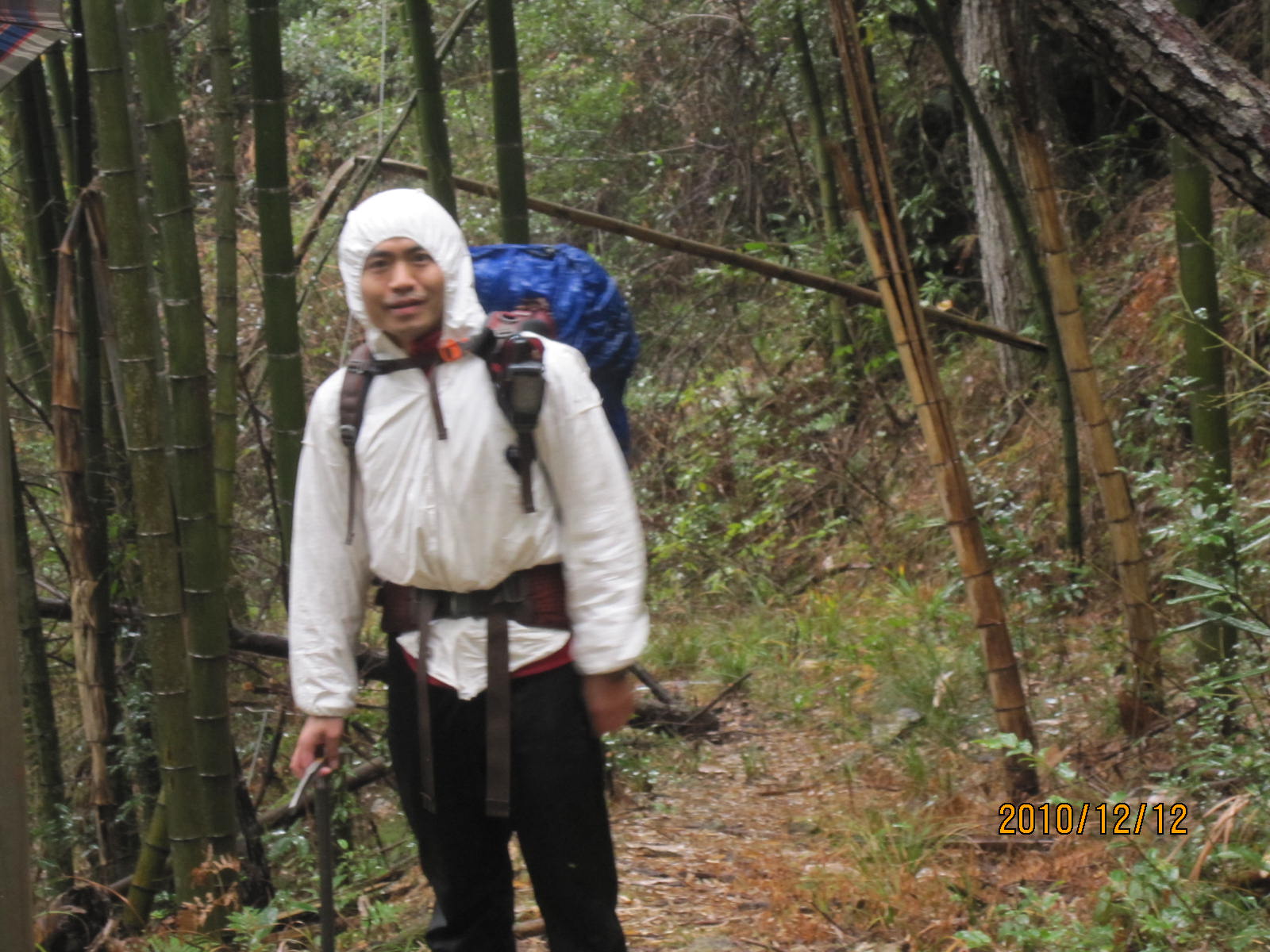 我这次的着装是内穿C3内衣裤,上身以一件薄samrtwool美丽奴羊毛衫为中间层,外穿涤卡龙航海软壳,下雨时再加Tyvek雨衣一件, 下身外套软壳裤子一条,整个活动过程中感觉舒适,动作舒展无摩擦感,下雨时到处湿漉漉的,在车里脱开外套,内衣的汗干得很快,以前我经常喜欢穿排汗能力极强骑行服作为排汗内衣,这个感觉也差不多, 但为了表面光滑,可能损失了外层的蒸发面积,有机会我会再做一下详细的比较