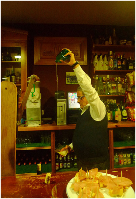 Asturias的Sidra(苹果酒)倒法,通常漏掉一半,好可惜呀