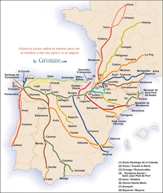 圣地亚哥之路(El camino de Santiago)是联合国世界文化遗产,也是欧洲第一大文化旅游线路。在基督教世界中有三大圣地:耶路撒冷、罗马和西班牙的圣地亚哥。圣地亚哥朝圣之路起源于900多年前。传说耶稣十二门徒之一的圣雅各(Saint James,西班牙语叫Santiago,音译为圣地亚哥,中文版圣经中的圣雅各)死后人们将他的遗骨从耶路撒冷运到西班牙西北部的加利西亚海岸并埋葬在圣地亚哥·德·孔波斯特拉(Santiago de Compostela,简称圣地亚哥),也就是现在朝圣之路的终点。由于战乱不断以及十字军的横行,当时没有多少欧洲人能够前往耶路撒冷或是罗马朝圣,因此罗马教皇、圣地亚哥当地基督教会以及欧洲各国国王共同决定为全欧洲的朝圣者开辟一条前往西班牙圣地亚哥的朝圣之路,通过走朝圣之路达到忏悔和赎罪的目的。于是从12、13世纪开始全欧洲的朝圣者源源不断的来西班牙圣地亚哥朝圣,直到17世纪西班牙帝国没落以及近代的战乱,圣地亚哥之路逐渐被世人淡忘。1987年西班牙政府特别是加利西亚自治大区(Galicia)政府决定重新开辟圣地牙哥之路,在欧盟推广这条自古以来的朝圣之路。圣地亚哥之路整条线路结合了自然风光、历史和文化,是欧洲非常重要的朝圣之路,也是一条非常棒的旅游线路。除了有很多欧洲的朝圣者之外,澳大利亚人、美国人、加拿大人也是主要客源,也有很多亚洲游客主要是日本人前来朝圣。如今圣地亚哥之路已经超越了宗教本身的含义,游客在徒步前往圣地亚哥的漫长路途中在领略西班牙北部美丽的自然风光之外,同时能够感受到朝圣者虔诚的心。(引自:玩转地球)