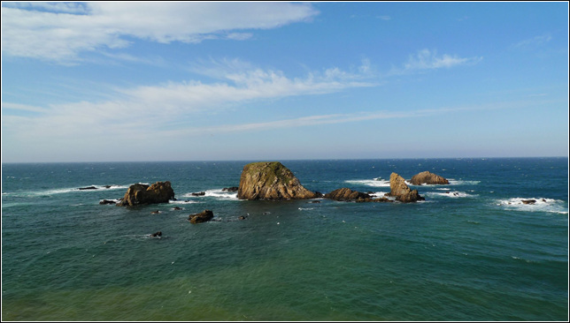 前5天在Asturias自治区,基本都是沿着海岸线走。每天都与绿色的草场、海边峭壁和碧蓝的比斯开湾相伴,爽朗宜人。后6天,进入Galicia自治区,离开海岸,山地增多,地形更为崎岖,而且多雨,以赶路为主。