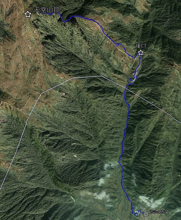 后来得到前人走过的轨迹确认,传统的天堂顶是走机耕路到 HB730左右 就要拐左,走山路了。而我们却是沿着机耕路一直到了1200的垭口。再拐左顺着防火带一直往上。