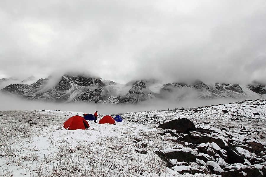 12天高海拔重装无向导,无马匹,无背夫;这次队伍有点大,出发时总共11人,七名队友完成12天穿越,有一位队友第三天清晨下撤,还有三人在第六天下午安全下撤(后续更新中会描述下撤原因);全程平均海拔在4600米左右,途中翻越两个接近5400米的垭口,行程中最低海拔3798米,最高海拔5395米,总里程约超过141公里。