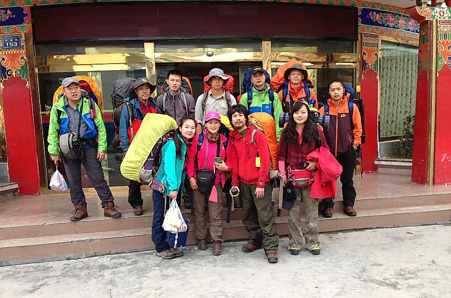 补发一张在林芝宾馆门前出发时拍的11人全家福