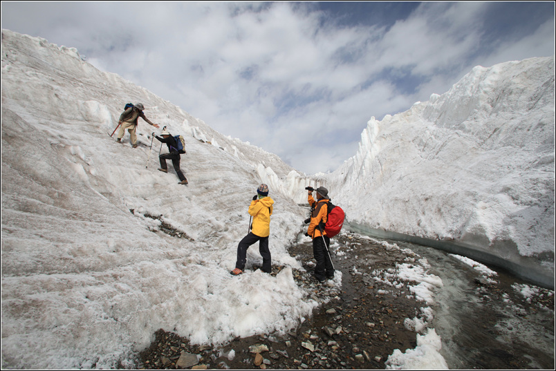 7月26日,那是一个难忘的日子。在经过8天连续的长距离高原徒步之后,我们队伍中的大部分队员已经身心疲惫无心恋战,想提前结束徒步,早日返回城市腐败。只有我们5个人还在作最后的坚持,我们要到达的是另一个鲜为人知的目的地——Gasherbrum I&II大本营。对绝大部分徒步爱好者而言,他们的目标就是看一眼K2,然后打道回府。