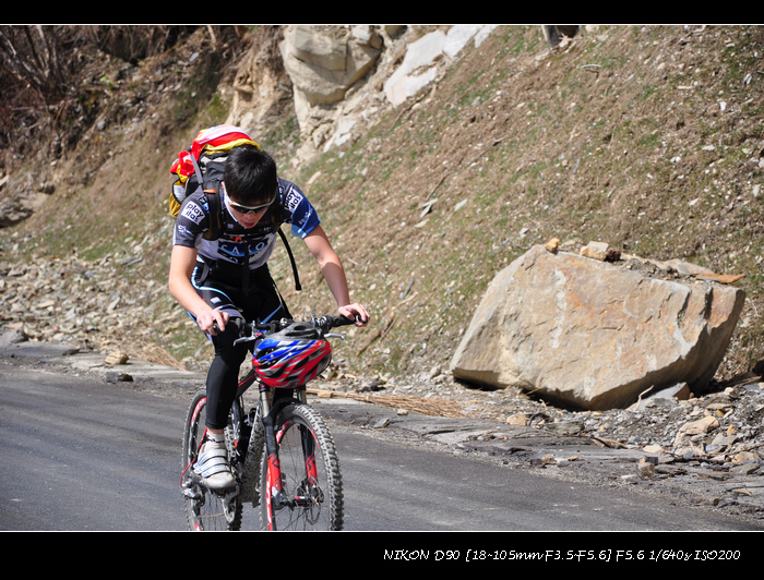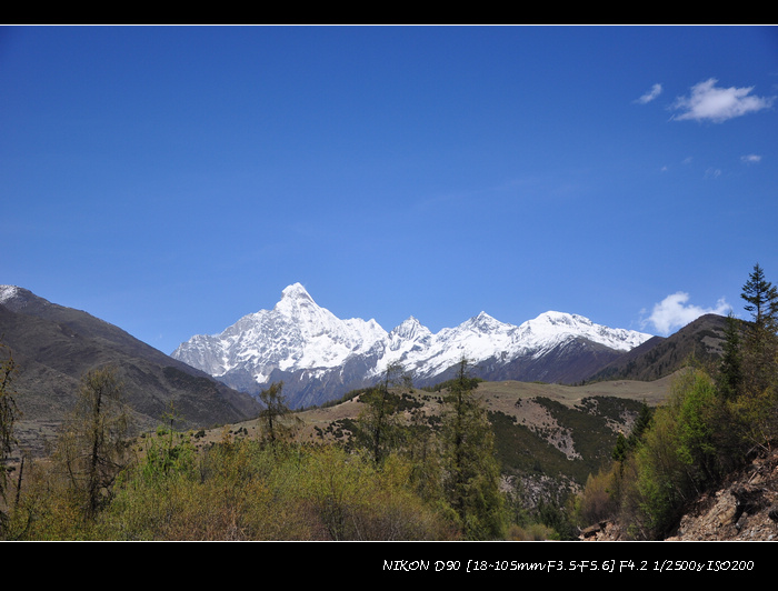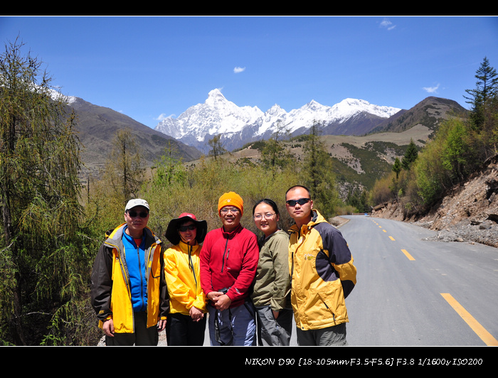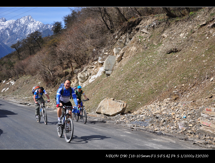 经都江堰、映秀、巴郎山到日隆。尽管提早出发,还是被交通管制堵在了路上。中午12点才被放行。路上遇到几个车友,骑车上巴郎山。14点,到达猫鼻梁,天气晴朗,向四姑娘山看去,四位姑娘落落大方依次排开,尽显芳容。