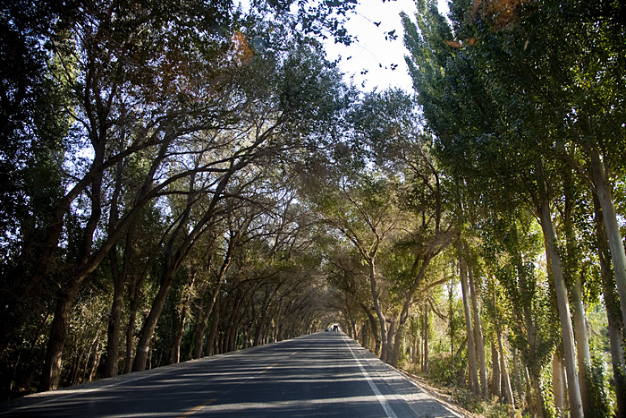 进入若羌的林荫大道