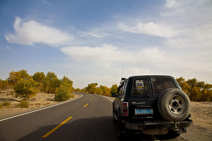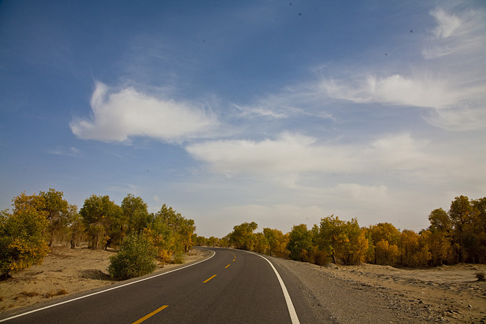 开始的路段很漂亮,一路都是胡杨林相伴
