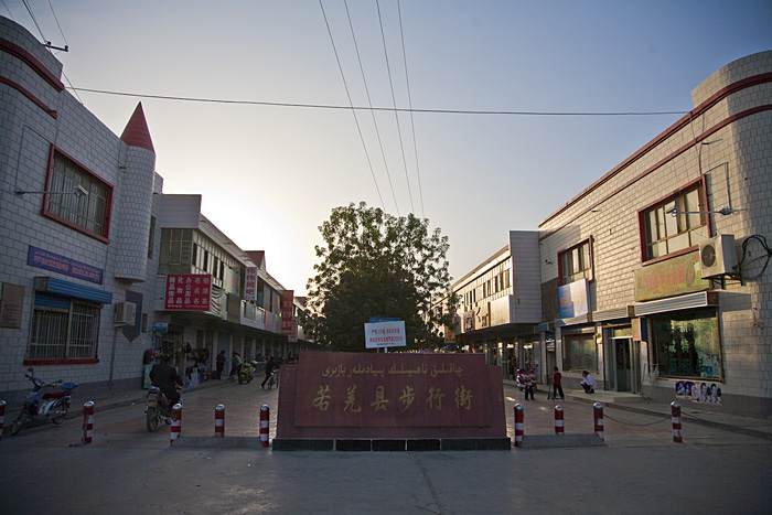 时间还早,出去逛街,若羌很小,街上人车都几乎没有,但是,居然还有一条大概50米的步行街,我和洛克笑得肚子痛,实际整个若羌都没有什么车,整个县城都可以算是步行街了,不知道县领导设个步行街的用意,显然,这是个很有大志的领导,也许发展10年后,步行街就有意义了。