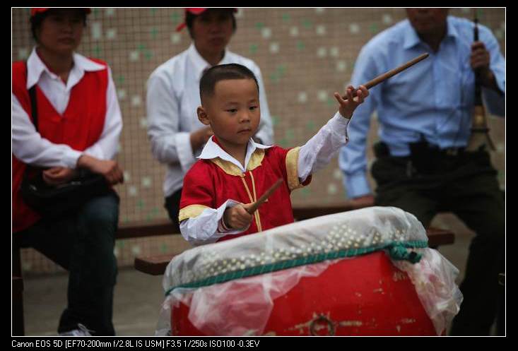 我们到达丰顺县埔寨镇的时候是中午,还没来得及吃饭,就听到一阵锣鼓声,寻声而去,鼓者竟为一孩子。