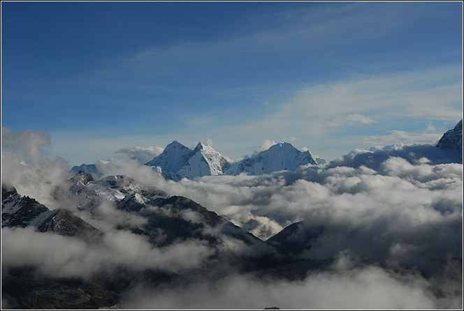 5、难度不大。按照windance的介绍,走完全程的标准时间是19天左右。我们7人14天半走完全程,每天只徒步4-6小时。只有倒数第二天,为了赶到南池洗澡、吃肉,才走了9个半小时(走完两天的路)。而且在三个观景点Gokyo-ri, Kala Pathar,Chukung-ri的下面,我们都住了2个晚上,在观景点上都停留了3—4小时,直到天黑才下山。其中,我4上Kala Pathar(2次登顶,1次3/4,1次1/2),2上Gokyo-ri。