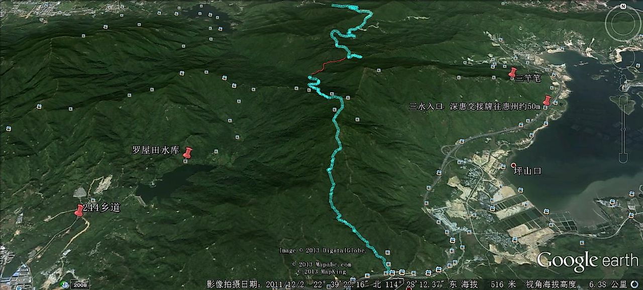 很可惜,右支里边没有GPS信号(有更专业的GPS设备的同学以后穿越时不妨补上这段轨迹)。