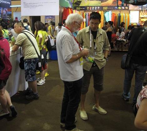 DMM攀登器材创始人光临 kailas展位现场,盛赞Kailas CNC技术冰镐,Thank you,Denny Moorhouse!