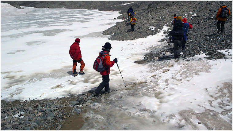 3、体验组的队员可以徒步去看冰川,来回3个多小时。