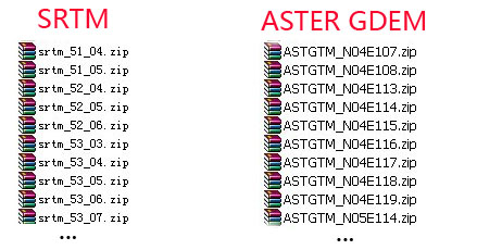 SRTM数据格式:srtm_51_04.zip、srtm_51_04.zip……等