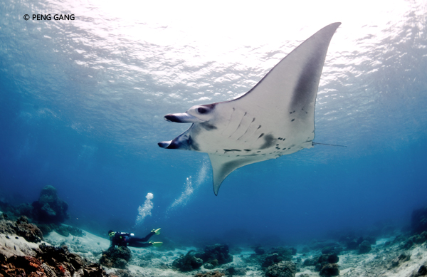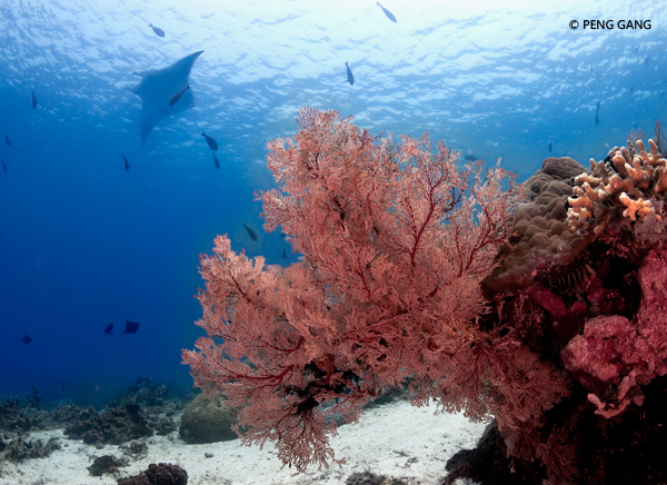 这里的Manta有黑、白两种。既有进食区也有清洁站。水质较清,浮潜和水肺潜都有机会拍摄到令人震撼的Manta照片。见到排队的Manta从头上不足一米的地方渐次掠过,几乎不能呼吸。这次没有见到Manta方阵,但是根据这里的Manta数量,是有机会的。