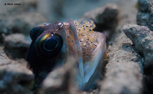 Jaw Fish 在月圆开始口中含卵,之后约有5天的时间在清晨5~7点间吐卵,吐卵时间仅为几秒钟就结束。