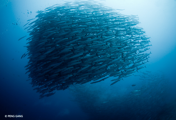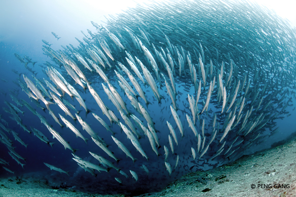 超巨大的海狼群伴随着几乎无法举起相机的强流。跟随优雅美丽的鹰鳐有时需要下到近40米深处。另外有一个特别的潜点,有机会见到大量鹰鳐,但有很强的洗衣机流。即使本地导潜也要谨慎选择合适的时间下潜。这里的地貌极为奇特,沟壑纵横,带给人的震撼也许用相机也无法拍出。