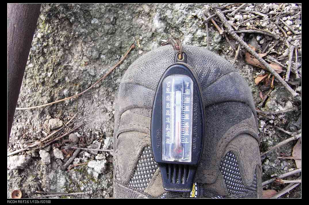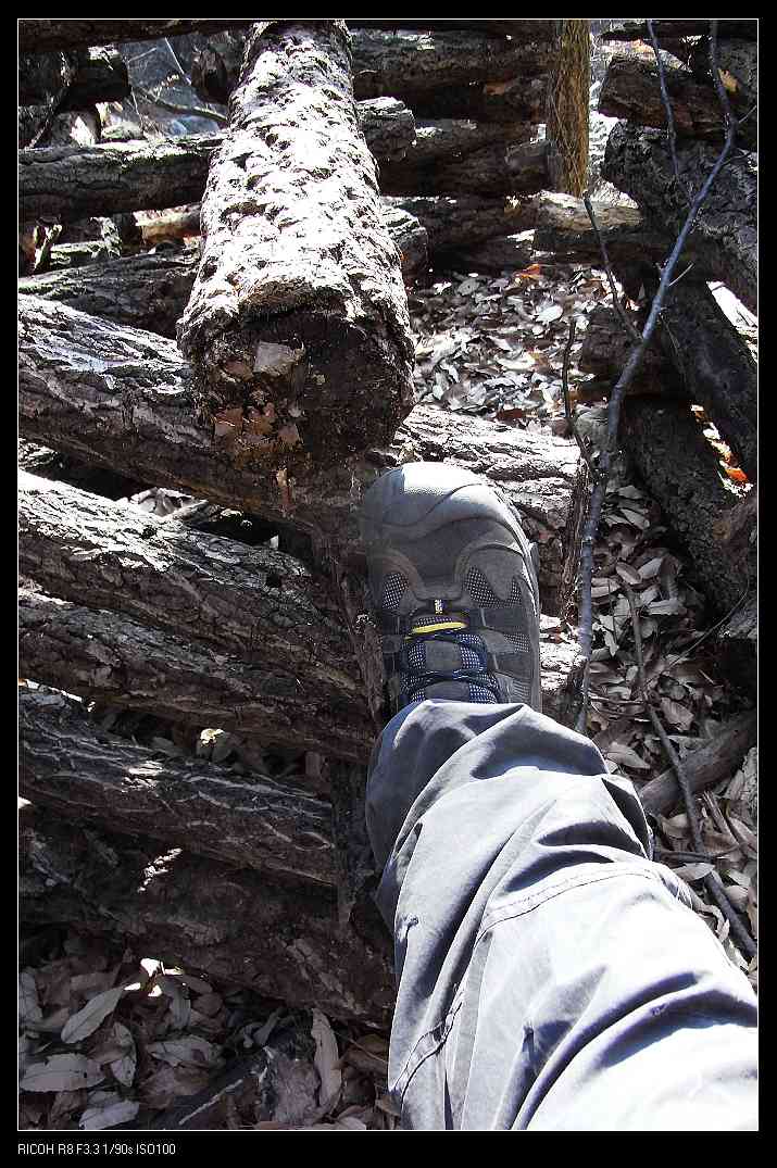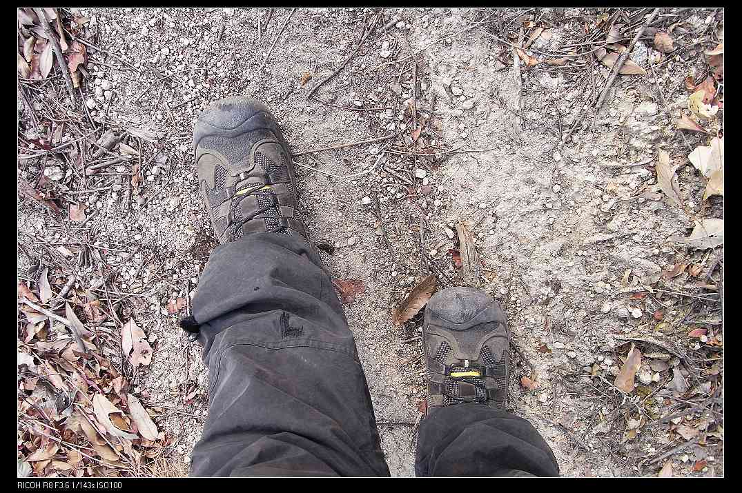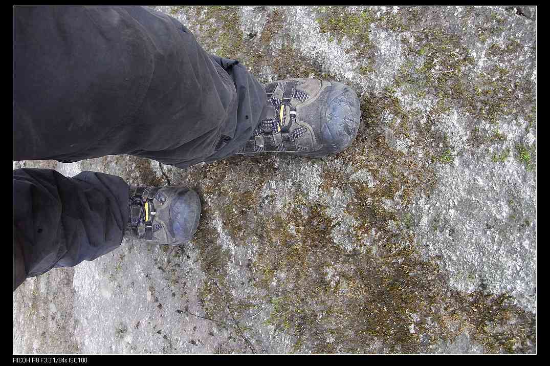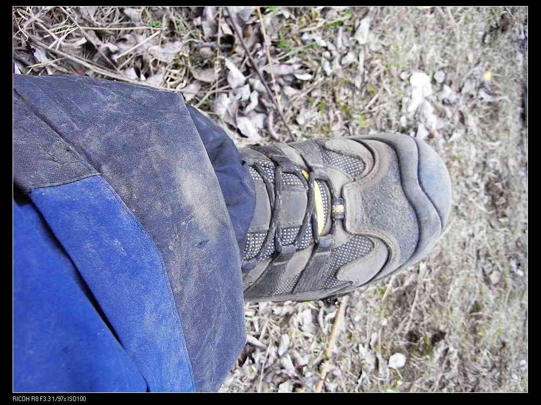 在老庙子营地,停止徒步后一个小时左右,被汗湿的袜子就变得冰凉,脚开始感觉到非常不舒服。本次行程,穿的是COOLMAX材料的厚袜子,按理袜子本身具有较好的排汗性,但汗气始终集聚在鞋子里面,无法排到鞋子的外面去,袜子的前脚掌基本全部被汗湿,鞋垫也湿漉漉的。幸亏当夜在营地有篝火,否则的话,鞋子放在帐篷外肯定会结冰。第二天的行程,结果与前一日完全相同,一天的路程下来,鞋子里面湿漉漉的。