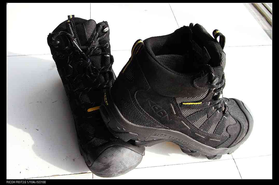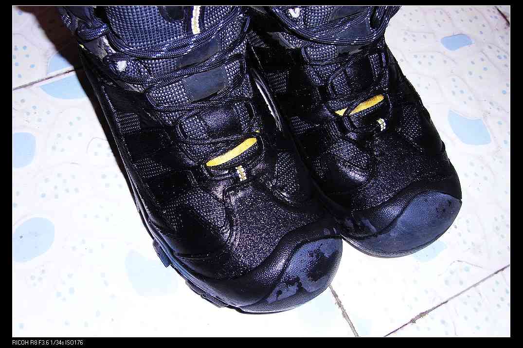 防撕挂性:经过2天的穿越,在通过荆棘丛和碎石地带后,鞋面材料的防撕挂得到一定的考验,鞋面没有出现被钩烂和磨烂的痕迹。
