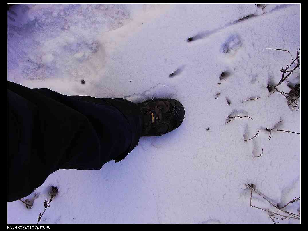 为了进一步测试此鞋的透气性能,12月中旬去东北特意穿了这双鞋。在东北地区零下十几度的环境下,鞋子在防滑性值得赞扬,但令人失望依然是透气性。在穿了一双COOLMAX袜子的情况下,走了几个小时,袜子仍旧出现了大面积的汗迹。