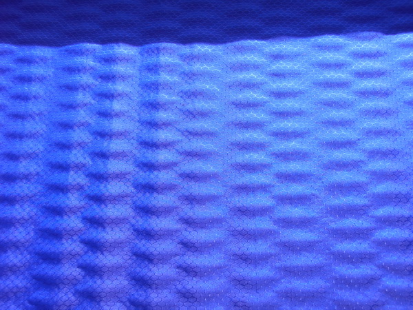 拿到垫子的第一感观是外形很方正,其实这种长方形的垫子,如果考虑到轻量化的设计,我觉得还是木乃伊形状的会更好一些,毕竟腿部方向的下半部分所占用的空间要小于上半身所占用的面积,把垫子下半部分截掉边角,一方面是减轻重量,另一方方面也压缩了体积,加快了充气的速度。