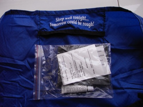 该款垫子厂家提供的官方说明上声称“所有REM双轨防潮垫均配有工具包、维修工具”,但打开防潮垫的包装后,里面只有2小块尼龙布和一小瓶胶水,不知道这个是不是厂家所说的“工具包和维修工具”?