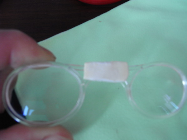为了防止双面胶在低温环境下失去粘度,还可以在镜架的鼻梁部分再加固一道透明胶带