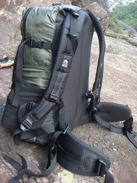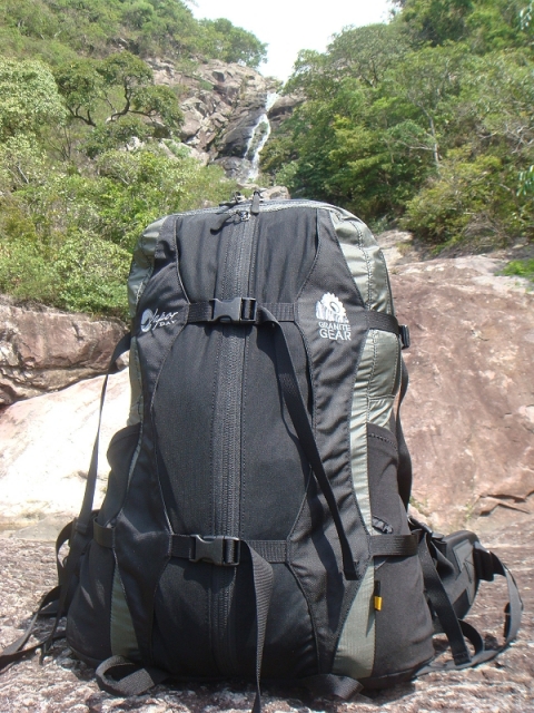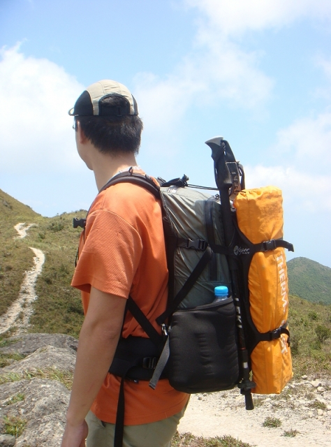 上图为七娘山顶休息时晴朗背包去掉外挂物品的模样,下图则是再次动身时背负所有装备的行头。
