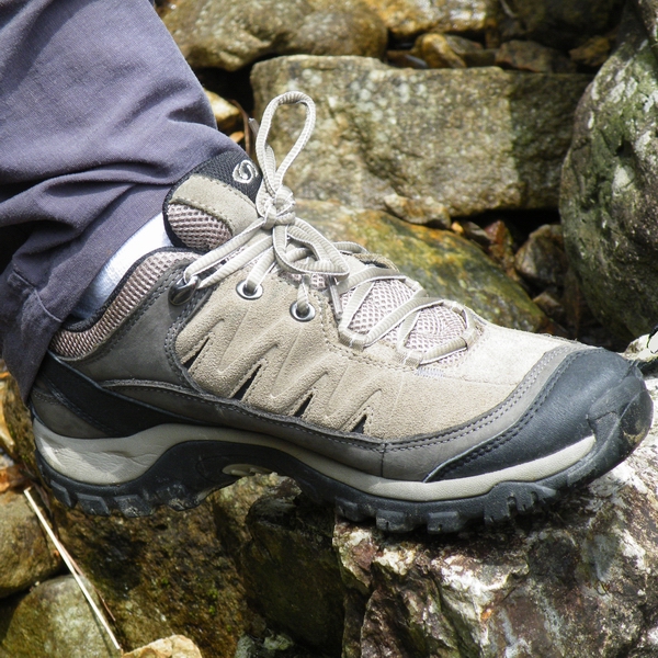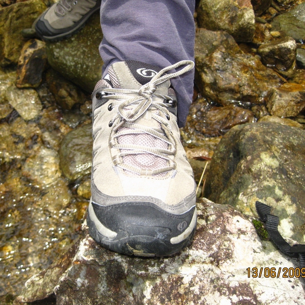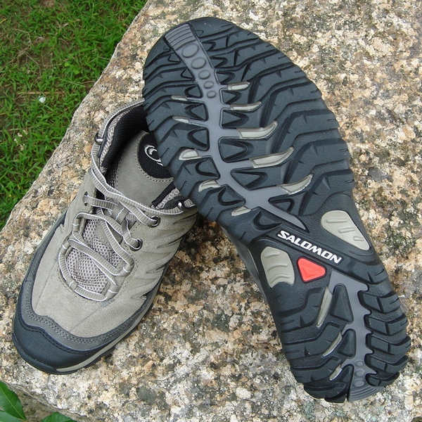 在湿滑的石头上,所罗门设计的鞋底纹路跟别的登山鞋底纹路,一样的没有了防滑性能,这一点都不奇怪的,所以失望感并不强烈,只是没有了惊喜感而已。而在沙土路面,此鞋底的抓地能力丝毫不逊色于我所穿过的所有鞋的鞋底,包括名扬天下的V底。