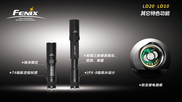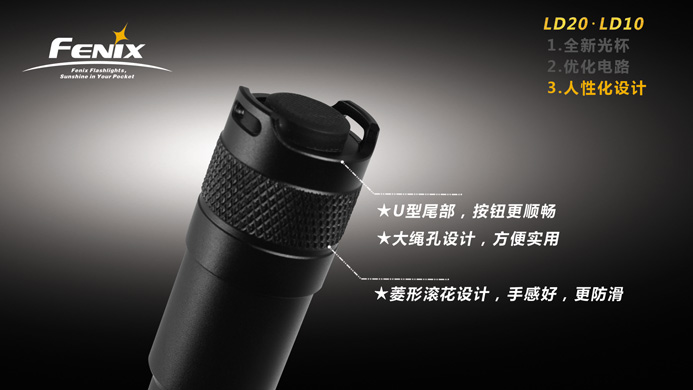 4. LD20是Fenix畅销品L2D的全新升级版,性能优异、品质卓越、功能丰富、款式新颖,适合手电爱好者和对手电的 品质要求比较高的人士使用