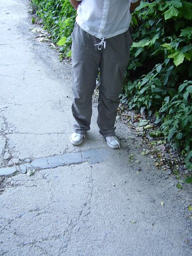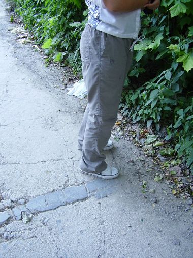然后可能因为本人胖而不高裤子有点长,裤子面料光滑,挽起很快就垂下了,又不舍剪掉一块,