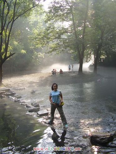 18号下午扎营;19号早晨阿哈湖下游因是山谷中早晨天气潮湿有雾