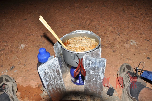 2)气罐+炉头+锅,整体重心好高,这让习惯了CAMP4的我很是担心啥时候翻锅就惨了。使用这种直喷式炉头,可能都得时刻注意锅要放正,搅动的时候要把着手柄