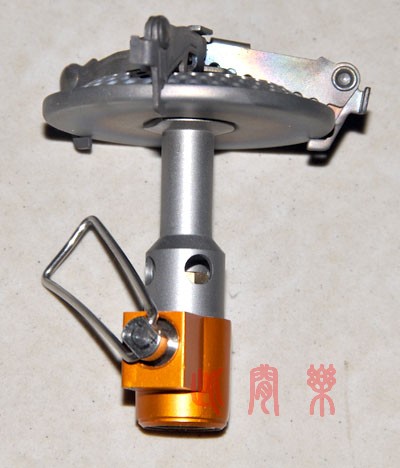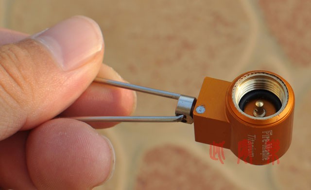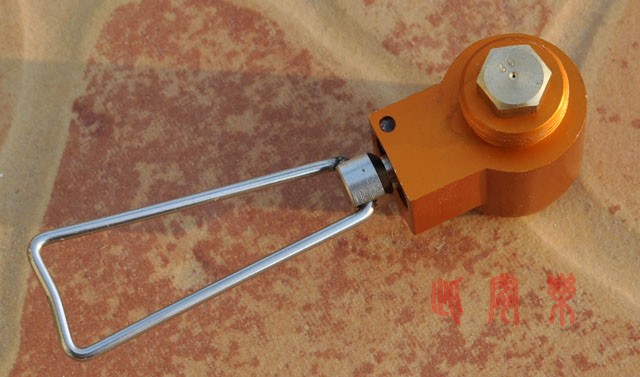 9)喷嘴,开口很小,而且也是铜的。看到这里,可能是厂家考虑到气化的问题,采用铜来加强导热吧。不过后来使用中,发现炉头本身的热量很容易就传导和辐射到调节阀那里来,而且还能辐射到气罐的上部。这么强劲的热量,不使用铜件问题也不大吧,换成钛喷嘴就更轻了