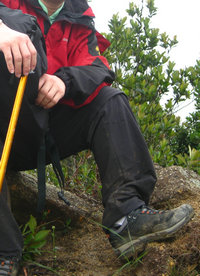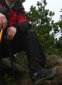 在不断地爬升、攀越当中,这双鞋子的稳重、踏实、灵便、有效借力等等优良表现一次次的给了我惊喜。终于赶上了吹驴以后,在一次休息带来的机会当中竟然赶上了前队,并有幸享受了一次野火式的迷路兜圈。此时脚上的感受就是干爽、舒适。在赶上野火以后,终于再一次跟着野火迷路兜圈了!纠正了前进的方向继续前进时,吹驴也上来了。我停下来和吹驴一起远离了迷路的根源——野火。