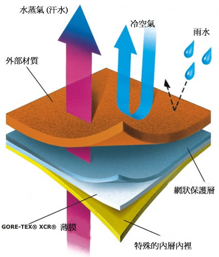 B.Gore-Tex®XCR面料提供最佳防水透气效果。