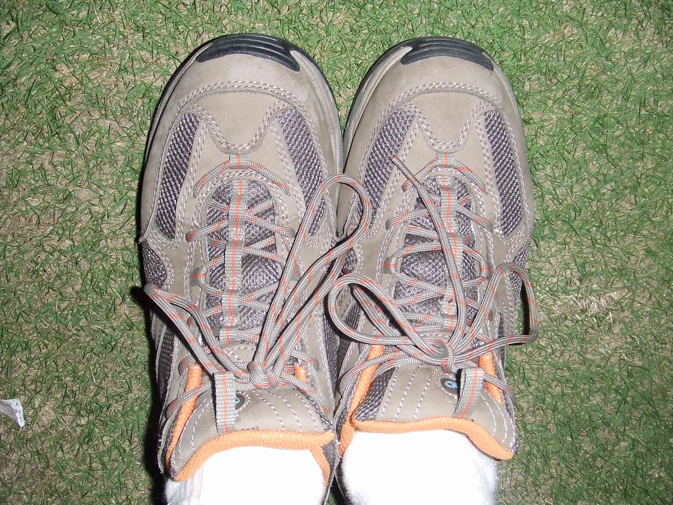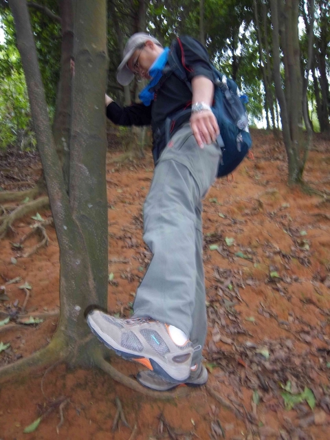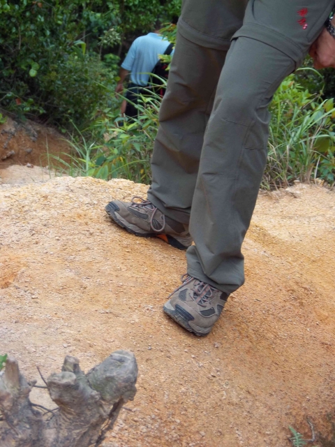 刚出发是有零星小雨,穿着诺诗兰鞋子,就在纠结不防水的问题,最近一周来连日下雨,此鞋子不具有防水性,但是鞋底防滑性很好,尤其表现为雨后的湿滑路面,沙石路防滑性也很好,为下山增加平稳性。