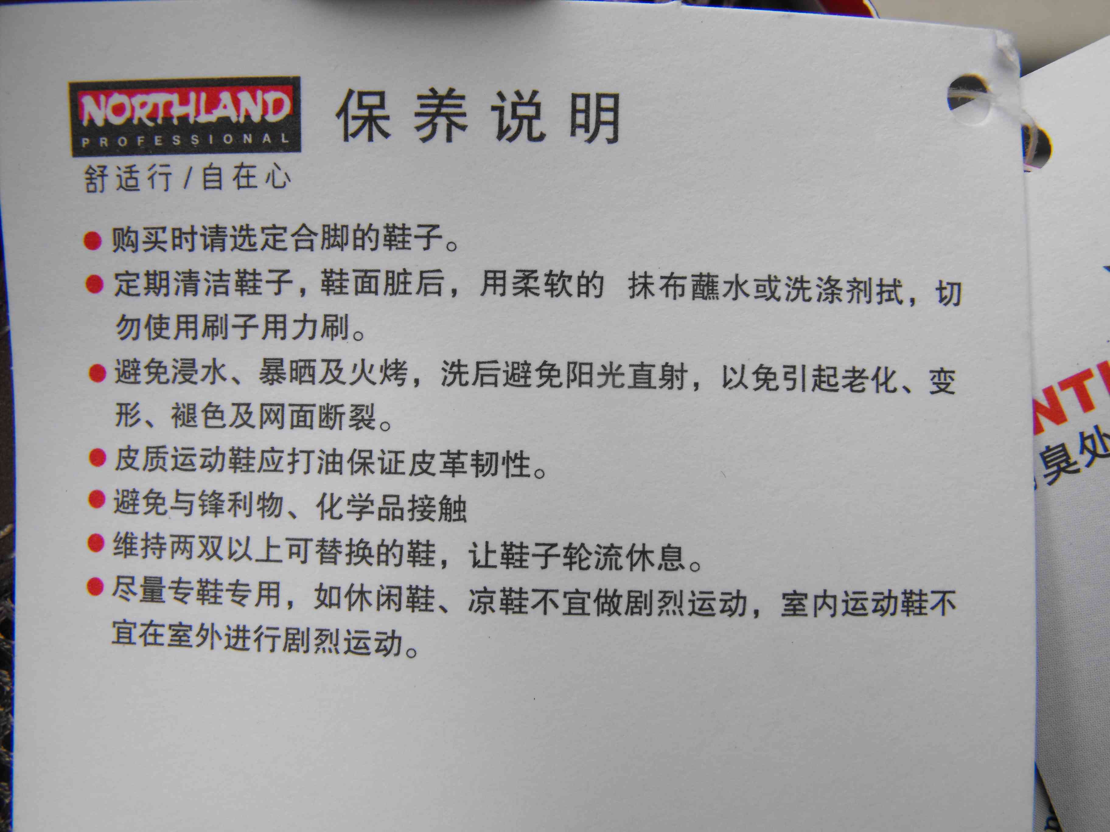 优化大底设计,根据欧洲标准,鞋底摩擦系数小于0.40为非常危险环境范围,摩擦系数为0.5-0.6为基本安全环境范围,摩擦系数大于 0.6则为非常安全环境范围。而northland的防滑优化大底,经出厂测试达到了0.7的业内最高水平,防滑性能卓越,足以给消费者带来非常安全的行走保护。”
