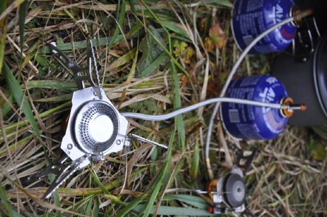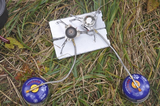 3,两个炉头的对比(一个是朋友在淘宝上买的,用了很久,不过悲剧的是户外太亮无法观测到火苗和火力,后期补上)