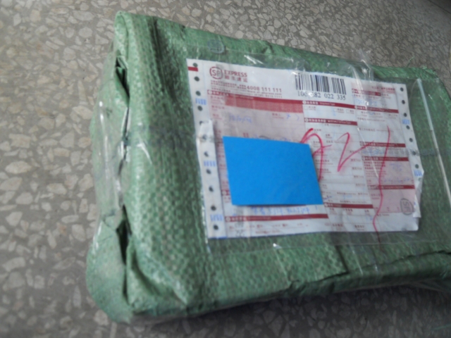 赶紧打开来看看情况,胶袋已经被打了,或许是快递公司检货所致,