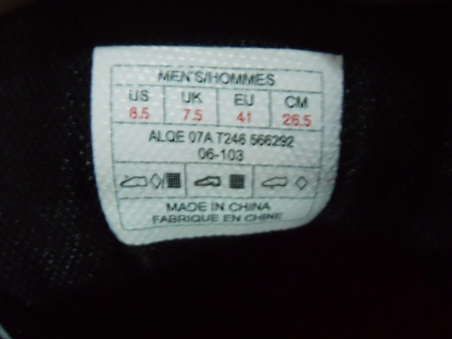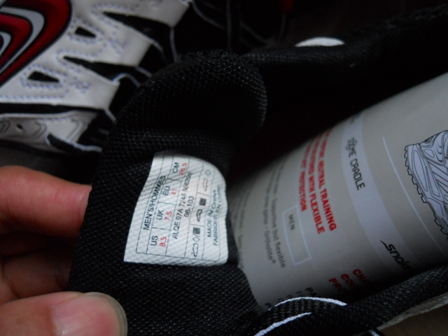 3、一双好鞋的前题是合脚,鞋的尺码大小各个厂家的理解有点差异,单看的欧码41,26.5cm的标签平常穿42码的我是不去穿它(特殊功能鞋鞋除外),有点冒险好在有工作人员的帮助确认。选新鞋最好的还是在下午亲自试穿,尺码对不对,鞋子好不好,只有自己穿过以后才知道。