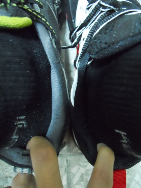 (1)、测试的鞋子是中性鞋底半弯曲鞋楦适合自己的足弓,左鞋与左脚的配合是比较默契的,但是有右鞋与右脚的磨合就不太好,起初还以为是鞋带系的不恰当,但左右用的是同样的系法,应该不会有太大的差异的,右脚在右鞋内觉得会有点空空太放松,右鞋在跑凹凸路面的是会有比较明显的,没有包裹性。本身左右脚会存在差异以及可能是同批次的鞋是由加工左鞋和右鞋的不同组别的工人加工所造成的,毕竟大多数人都习惯性的用右手。
