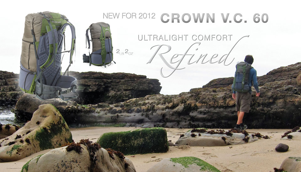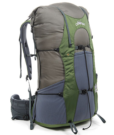 皇冠背包的背板可拆卸,这对于狂热的超轻量化用户具有重大意义。背包的肩带和腰带采用双密度衬垫和半宽度束紧带,肩带上带有弹力外兜,腰带可外挂腰带包(须额外购买)。皇冠背包的背负系统不可调(均码),女式背负有小号和中号,男式背负有中号和大号可供选择。
