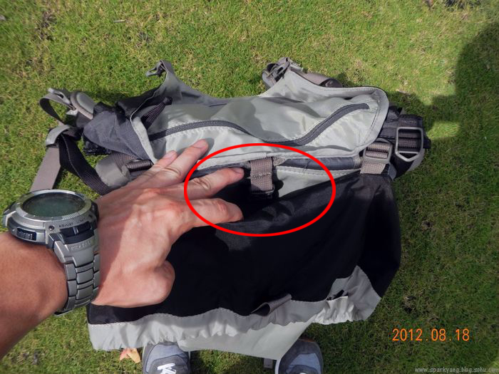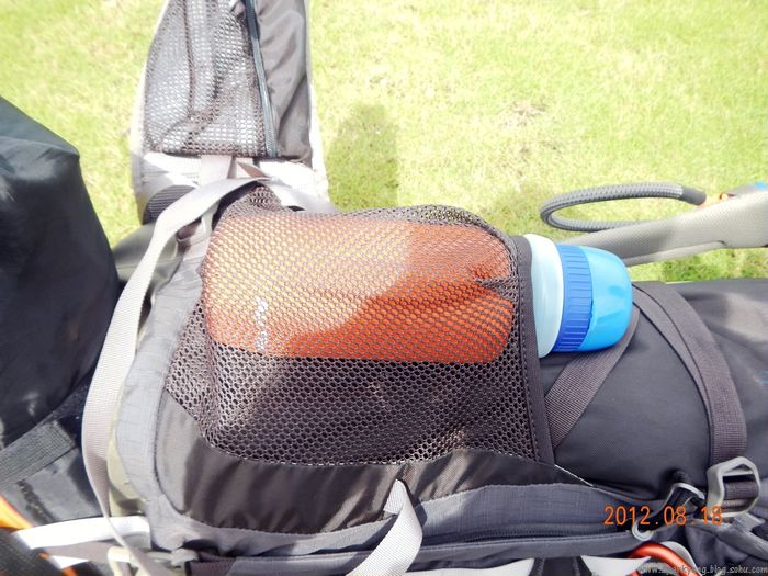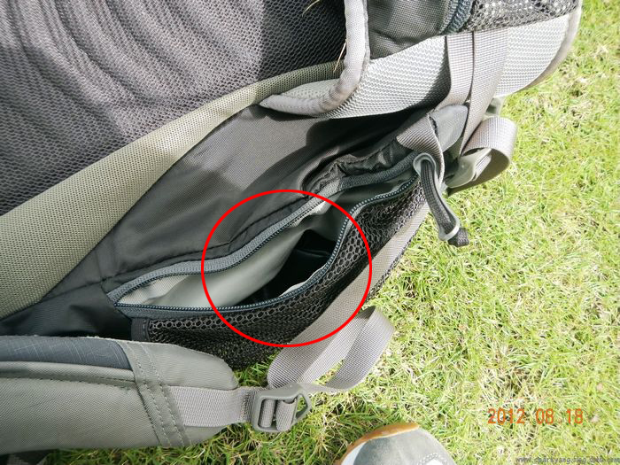 4背包主舱外侧有个辅助的小舱,没有设计卡口,拉链,这样方便放置一些顺手拾取的东西,比如雨伞,补充体能的视频,地图等