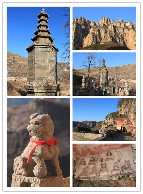 金灯寺在山西平顺县与河南林县交界的林虑山巅,初建于北齐年间,原名宝岩寺,后因萤光夜飞入寺,改称今名。石窟开凿于山巅自然形成的石凹内。开凿年代从明弘治十七年(1504年)起,至明嘉靖四十四年(1565年)止,历时60余年。石窟和建筑坐北朝南,依崖布列,现存七进院,洞窟14个,佛龛37个,摩崖造像500余尊。